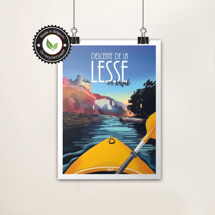 Pour une déco sportive, affiche des paysages du sud de la Belgique avec l’emblème du kayak.
